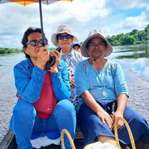 Les Franciscaines missionnaires de Marie en pirogue au Pérou